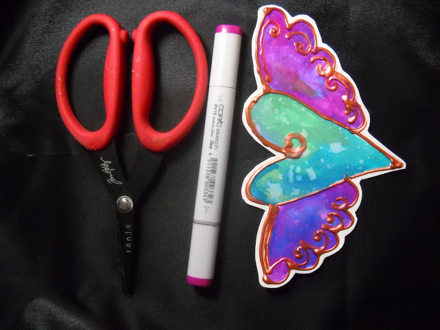 Filled in the design areas with Winsor Newton watercolors, then cut them out. These will be great fun “handmade” embellishments for cards, scrap pages, journaling. Really like the raised outlines.
