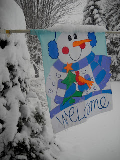 Art for today is my flag pictured below, along with the heaps of snow blanketing us in upstate New York this week. It sure is beginning to LOOK alot like Christmas, a picture perfect post card! It snowed for four days straight, and is still sprinkling here and there.