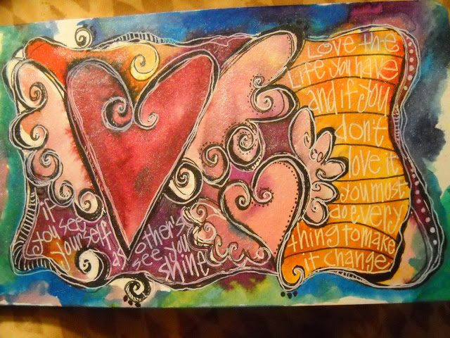 On the right side page spread, i drew my winged a heart and colored the same way. Outlined with my Inkssentials White Gel pen.