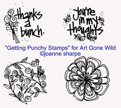 Since i wasn’t able to get the cards done for you to see, i thought i would just show you the entire “Getting Punchy” collection. You’ll be able to do so much with these stamps and the 3.5″ circle punch!