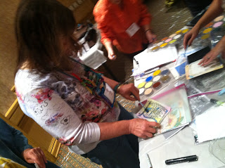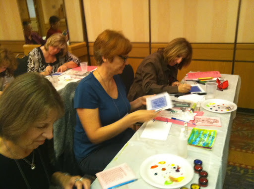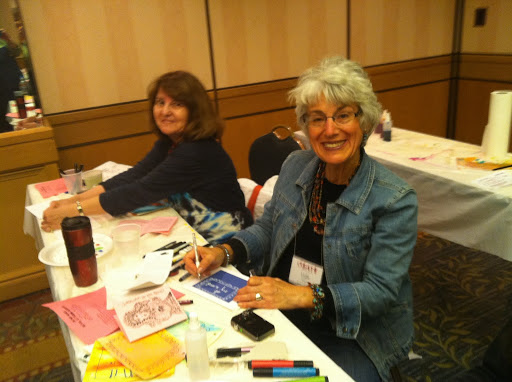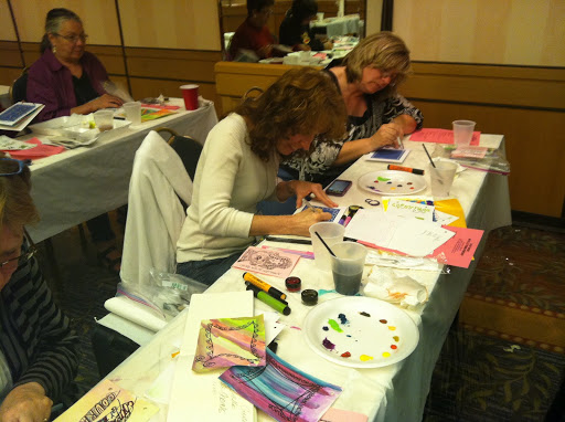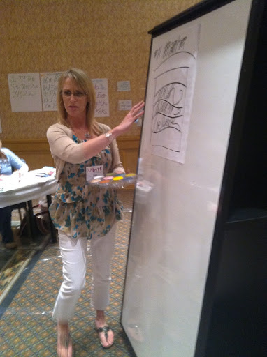 She thought she was coming to TAKE the class, but brought all her Pan Pastels trays to share with the students! Here’s Pam giving an impromptu demo on her color palette and how she uses Pan Pastels. It was so serendipitous! We joked that MY color palette was the exact opposite of hers!