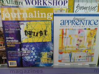 My heart went pitter patter when, on the same rack,  i saw the Art Journaling magazine that also features my work.