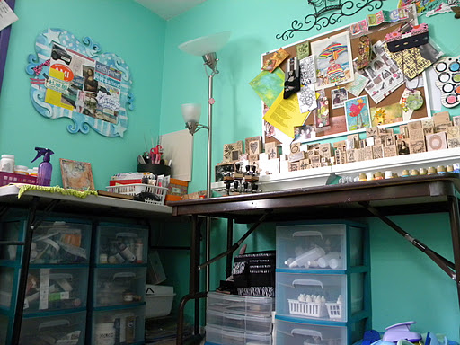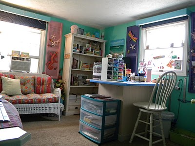 This was my daughter Meghan’s room when she lived at home.  When she moved out into her own apartment a few years ago, we had the place emptied and repainted in 4 days!  Poor Meghan.  It was always a dream to have a nice art studio in my house.