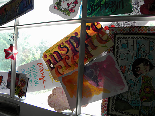 I’m always tucking fun things in the window panes.  This view is usually of 9 ft of snow in the 6 months of winter bizzards we have here in Rochester!