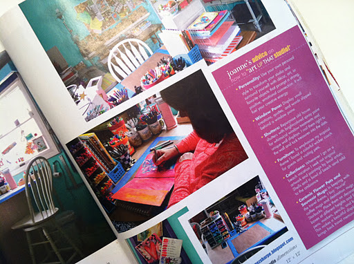 Here’s my article in the “studio vignettes” section.  Look at my perfect studio!!  Didn’t i have an insane cleaning marathon to get it looking all pretty for publication??  You betcha.  Now i can barely find anything!!
