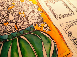 I completely filled my little my little green Handbook journal this weekend. The book has 128 toothy pages which means that i illustrated 256 pages! Here are about 70 of those pages. Can you imagine this blog post if i had ALL 256 pages posted! That’s a lot of cawfee sipping as you scroll through the pages!