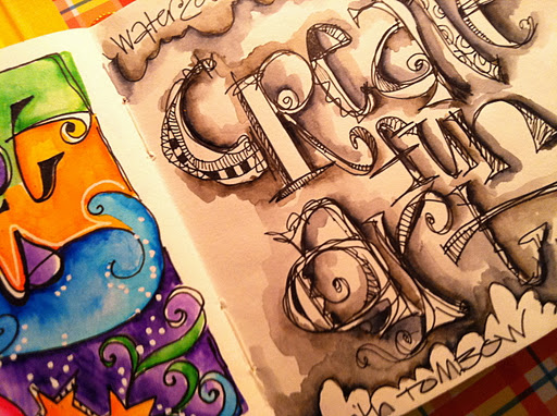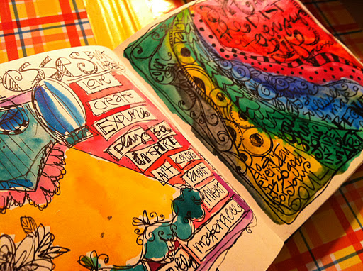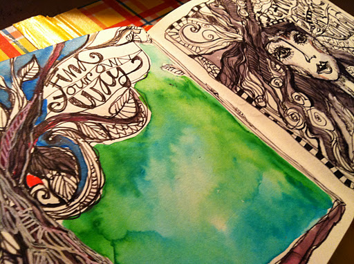 Lots of watercolor in this journal. This particular brand of journal, Handbook loves paint and marker!