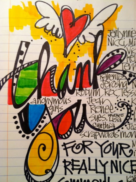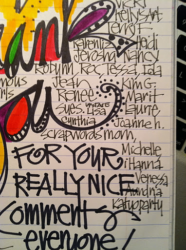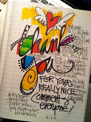 Thanks so much for your comments on my “whole journal” post!  Thank you for taking the time to share your kind words.  Here’s my thank you note, your name is written in my comp book journal , each and every one of you who left a comment.  Your encouragement inspires me to have more discipline to blog, post and share more often.