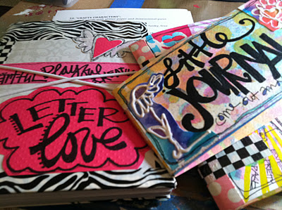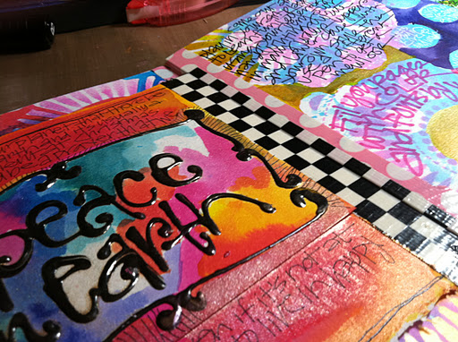 So excited!!! I’m getting ready to fly out to Denver this week to tape a DVD for Cloth Paper Scissors Workshop. I’ve been in a flurry creating art and samples for my taping. Artwork and supplies are all over my studio, because as you know, my best masterpieces are made in pure and total creative chaos! I will fill you in on the DVD details when it’s released in a few months. But for now, enjoy these Peerless watercolored and Crafters Workshop stenciled demo journals i put together with some tape and lettering. Thanks for stopping by!