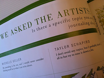 So, when you are reading the issue, know that the text in these “Ask the Artist” pages identified as JOANNE SHARPE, really belong to Donna Mulholland. Check out her blog, she has such a wonderful painting and journaling style. She also blogged about this experience today.
