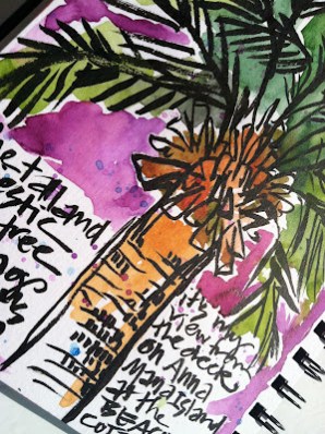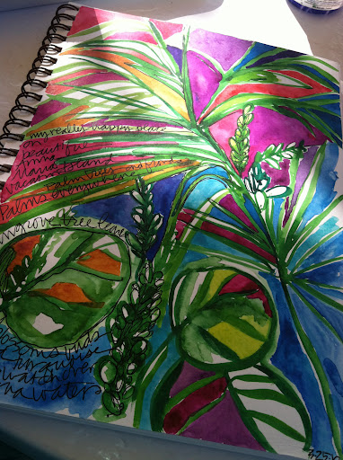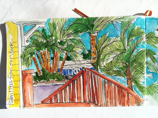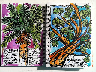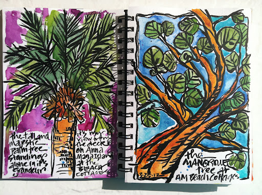 It was a perfect trip. I came for the sun and sand and was there to paint!  Determined to bring limited art supplies, i made a promise to myself to create 1-2 pieces of art each of the 10 days we were there.  Armed with my journals, watercolor palette and a few brushes it was simple enough, and i did create 20+ journal pages on this trip.