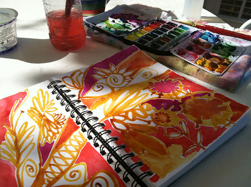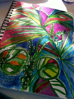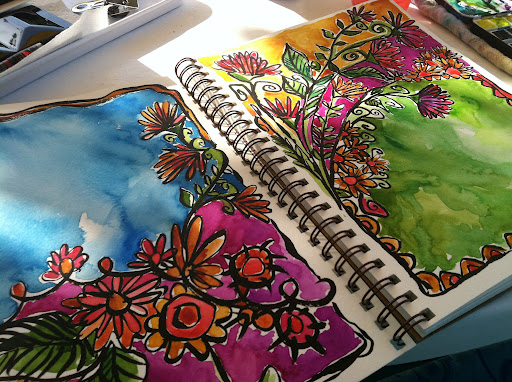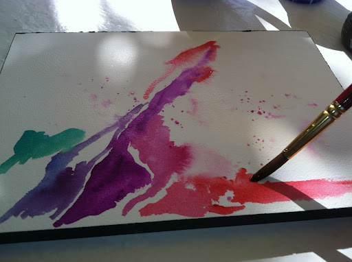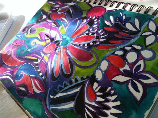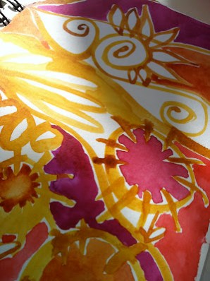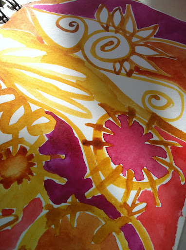 I love to paint.  There was no real plan to paint anything in particular, i just went with my colorful palette to just paint.  Watercolor doodles as a warm up got the paints and color flowing.