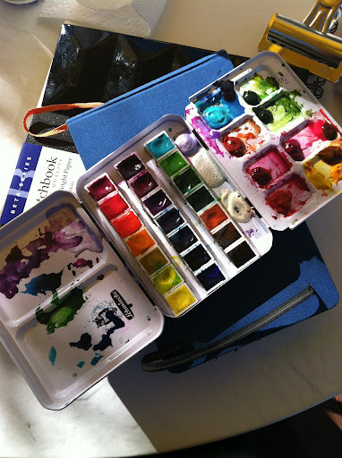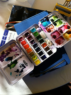 …I like to bring a few journals, because i usually have more than one painted page going at once.