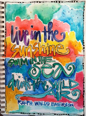 This is my perfect vacation…eat, paint, beach, paint, sleep, REPEAT!  My bliss is morning coffee on the sunny deck with my paints and pages, filling the journals and absorbing the warmth and color around me.