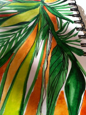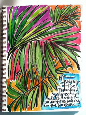 …Adding words and journaling takes me back to the moments of tranquility while painting.  The journal pages feel exactly like the moment when it was painted.  Different from a travel photograph, when you paint or draw in a travel journal, you are putting yourself in a moment in time with pen or paints.  You are capturing the feelings of where you are, with your artwork which is drawn from a deeper place.  As you go back to the pages later, the artwork brings you back to those moments.  Maybe because your whole heart and soul goes into your art?